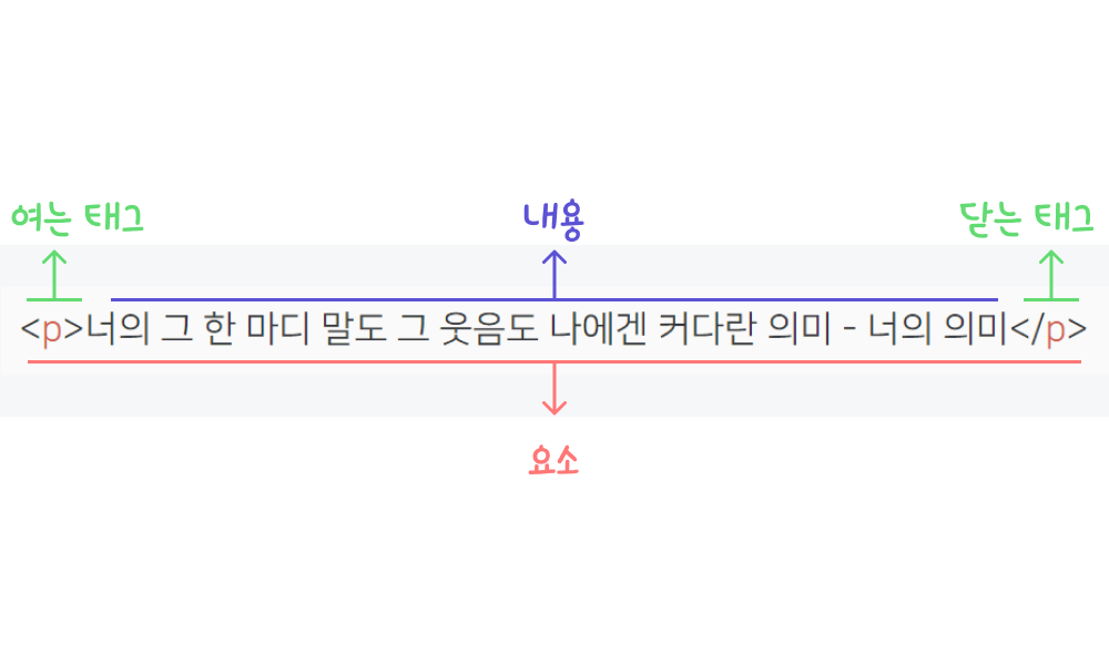 - 요소(element) : 요소는 여는 태그와 닫는 태그, 그리고 컨텐츠로 이루어집니다.